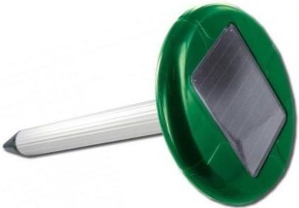- Солнечная панель в верхней части отпугивателя. Обеспечивает абсолютно автономную работу прибора. Вам не понадобится постоянно заряжать аккумулятор от сети или тратиться на покупку батареек.
